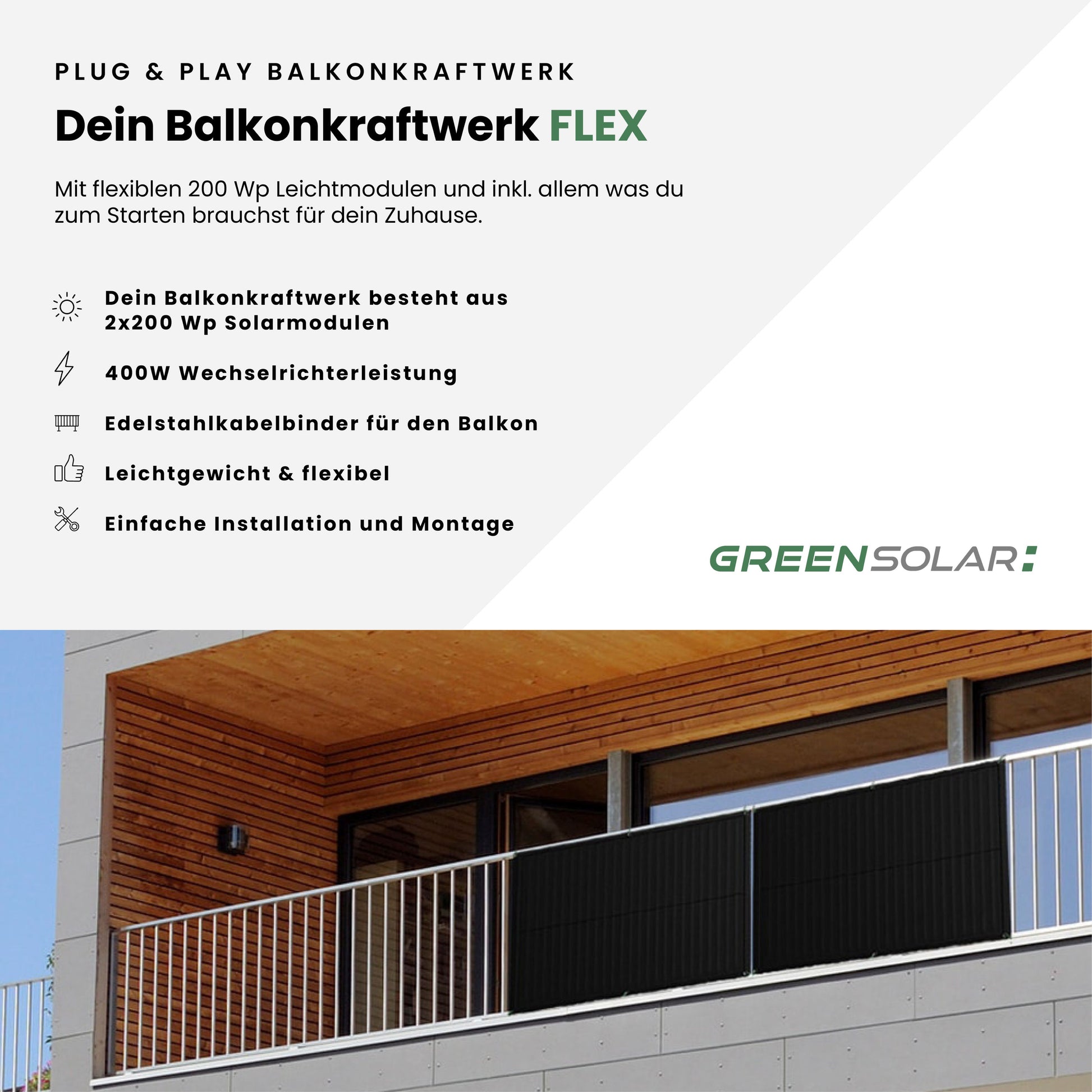 Das leichte Kraftwerk: 2 Flex-Module mit Edelstahl-Kabelbinder (400W)